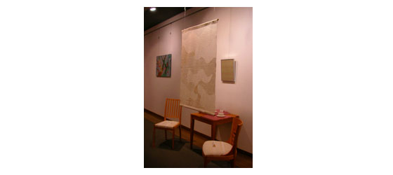 この展示の中に、タペストリー、間仕切り、額装した布、椅子張り地、